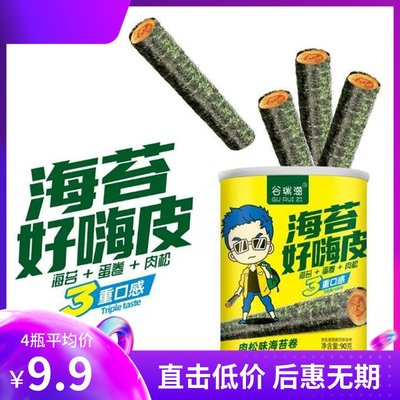 包邮谷瑞滋好嗨皮肉松味海苔蛋卷3重口感儿童休闲零食品90g罐装 虎窝淘